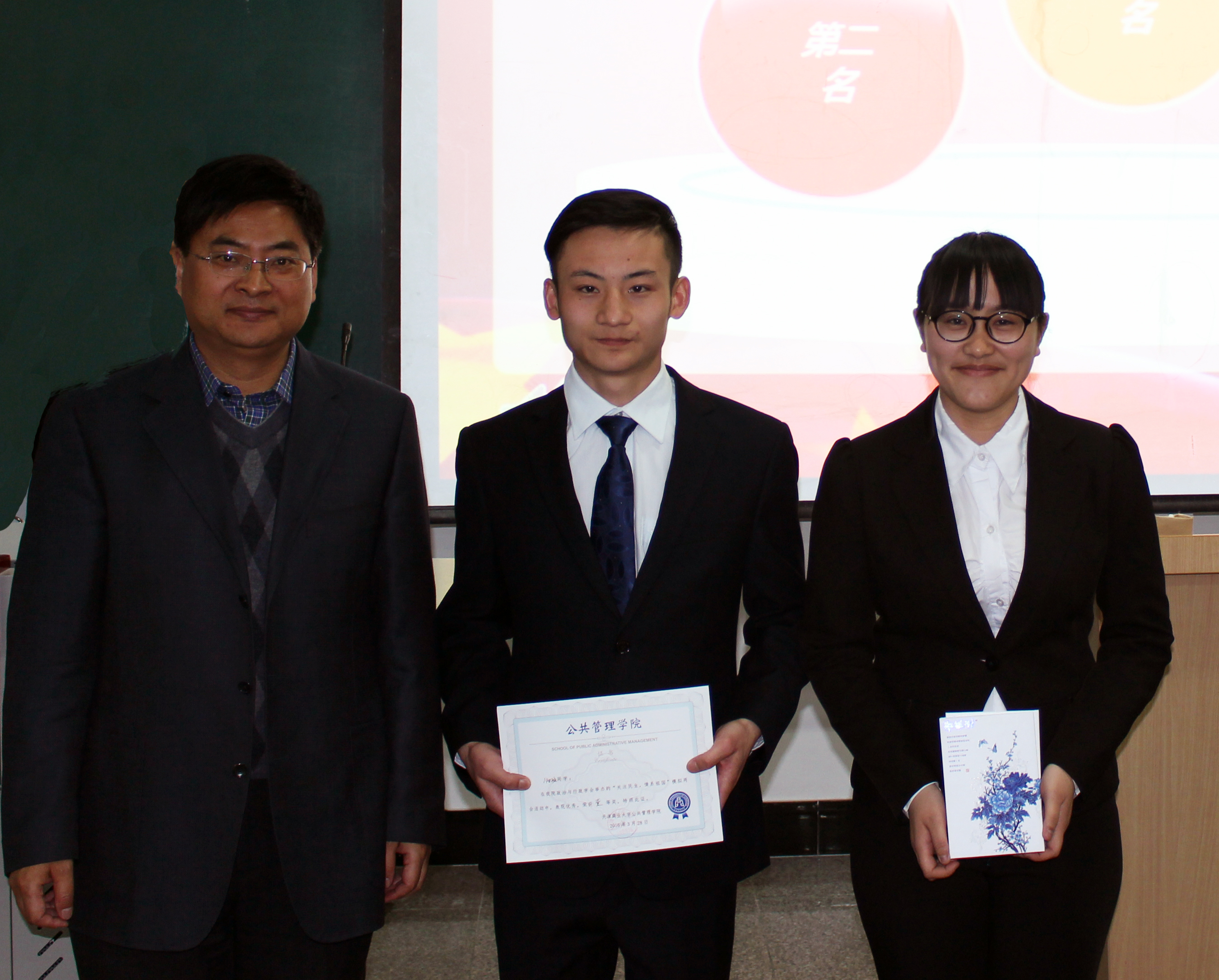 经过激烈的角逐,公共管理类1408班、1403班、1402班代表团分获一等奖、二等奖和三等奖,公共管理类1503班代表团获得最佳提案奖。