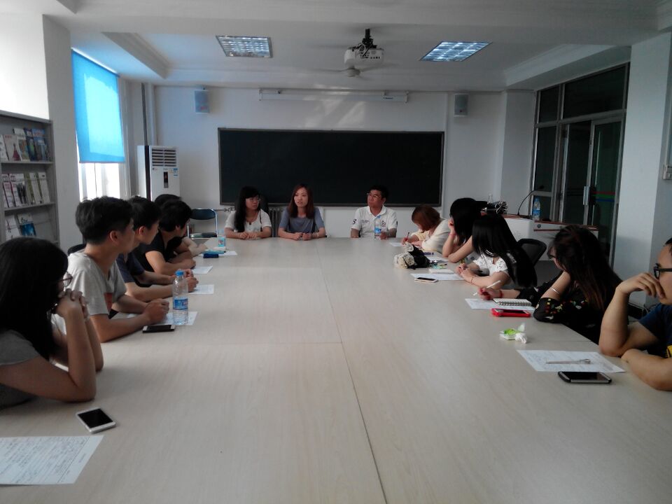 首先,刘铁景总经理介绍了2015天津·世界侨商名品博览会的筹备情况,并就志愿者招募要求及相关岗位进行了详细讲解;随后,对前来应聘的会展经济与管理专业12级、卓越会展师实验班14级同学的处事能力、应变能力、沟通与表达能力、精神风貌、外语水平等方面进行了考察,最终选拔出展会现场管理与服务志愿者15名。