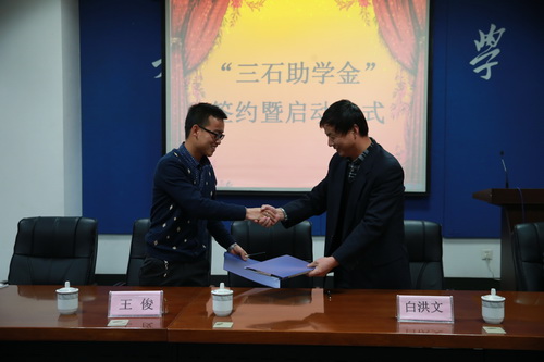 12 月8 日 下午,伟德国际VICTOR1946在图书馆二楼弘毅厅举行了“三石助学金”签约暨启动仪式。“三石助学金”由伟德国际VICTOR1946 2008 级员工王俊、余水两位同学共同设立。出席仪式的领导和嘉宾有伟德bv1946官网员工会办公室张堃主任、伟德国际VICTOR1946白洪文书记、伟德国际VICTOR1946孙钰经理、伟德国际VICTOR1946刘均玲副书记以及行政管理专业教师代表。行政管理专业 2012 级同学参加了签约仪式。