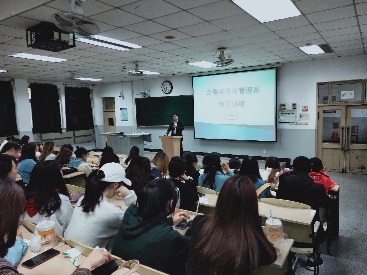 10月17日,会展经济与管理系在阶三教室为2017级和2018级同学进行了第二次考研指导,本次讲座是在9月30日首次讲座后同学们提出的若干考研问题总结梳理基础上,选取26个代表性问题进行的答疑讲解性讲座。讲座由杨琪副教授担任主讲,特别针对本专业的强实践性与研究生的理论性如何紧密结合,专业硕士与学术型硕士的区别,推免研究生资格获取,跨专业考研及考研时间表,以及考研时机等问题进行了特别详细的讲解,同学们对毕业和深造有了进一步的认识。杨老师鼓励同学们要树立全面发展和研究的理念,树立远大志向,从长远设计规划自己的未来,刻苦钻研,持之以恒。会后,不打算考研的同学在杨老师考研讲座鼓舞下对自己的未来就业也有了深入的思考,在为期一周的会展综合实训报告中记录下自己的择业规划。