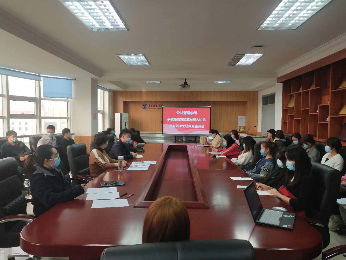 王雪丽副经理首先介绍传达了研究生教育改革发展大讨论的活动背景和意义,并带领各位同学认真学习文件中的重点内容,鼓励各位研究生代表积极参与讨论、反映问题、提出见解。