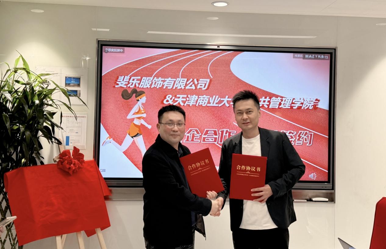 贺连军详细介绍了伟德国际VICTOR1946的发展历程、专业设置和办学规模等情况,希望与企业进行深度合作,实现优势互补、协同发展。销售总监王晶深入介绍了公司的主营业务、发展愿景和人才需求,希望能够吸纳更多锐意进取的人才,促进企业的高质量发展。斐乐服饰有限公司奥莱事业部华北区培训经理代丽平带领大家参观企业文化长廊,介绍了安踏集团的发展历程和企业文化。会后,王晶和贺连军分别代表企院双方签署了合作协议书,并进行实习就业基地的揭牌仪式。